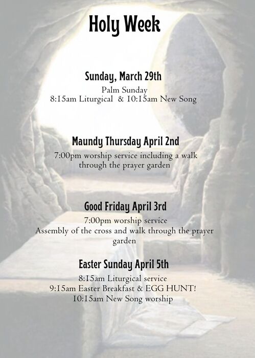 Sunday, March 29th- Palm Sunday - Preacher is Pastor Tim, Theme: "Hope Lives Here, My Heart Christ's Home" - Holy Communion at both services, Welcome New Members